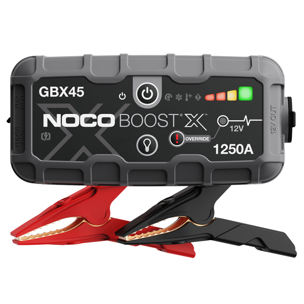 NOCO Boost X GBX45 is a portable lithium jump starter for 12-volt batteries in vehicles up to 6.5-liters gasoline and 4.0-liter diesel engines, including cars, motorcycles, trucks, ATVs, boats, RVs, vans, SUVs, tractors, and more.